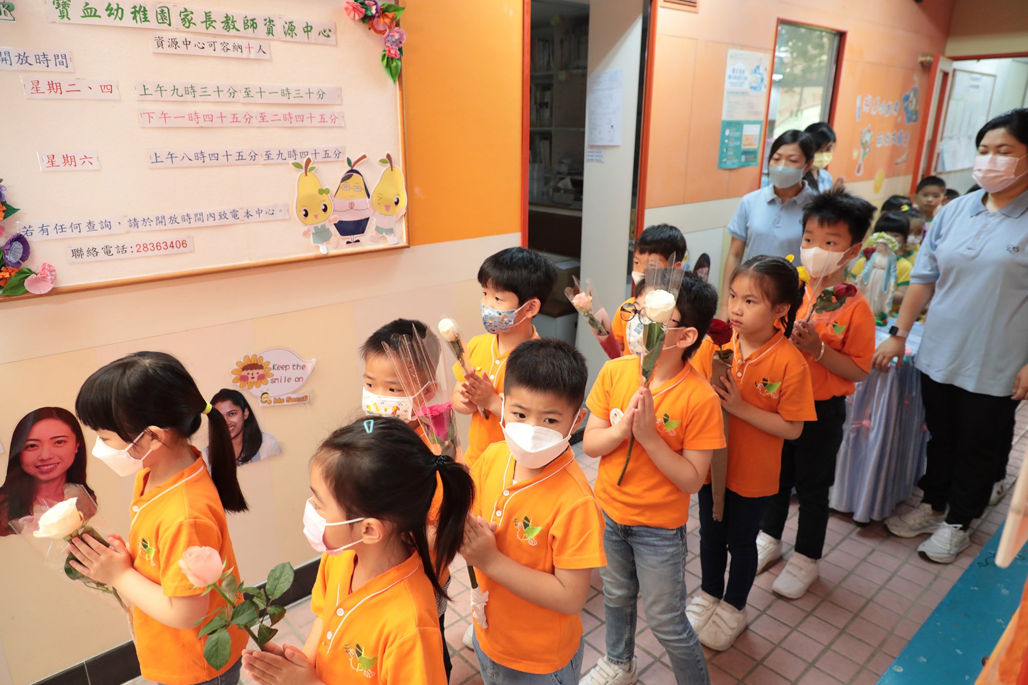 本校於五月二十九日(星期一)教會之母榮福童貞瑪利亞的紀念日,我們舉行了聖母月敬禮活動-聖母巡遊,以歌頌耶穌基督降生成人,救贖我們。首先由甘修女及基督小幼苗代表領路,護送著聖母像,全校師生跟隨聖母座駕前進到操場,沿途一同祈禱及詠唱「法地瑪聖母」、「聖母心裏愛孩子」、「中華聖母」感謝和讚頌聖母。其後,一同頌唸聖母經,幼兒為感謝聖母時時的陪伴,更送上心心和飛吻,在聖母像前獻上鮮花,藉此表達對聖母的孝愛。