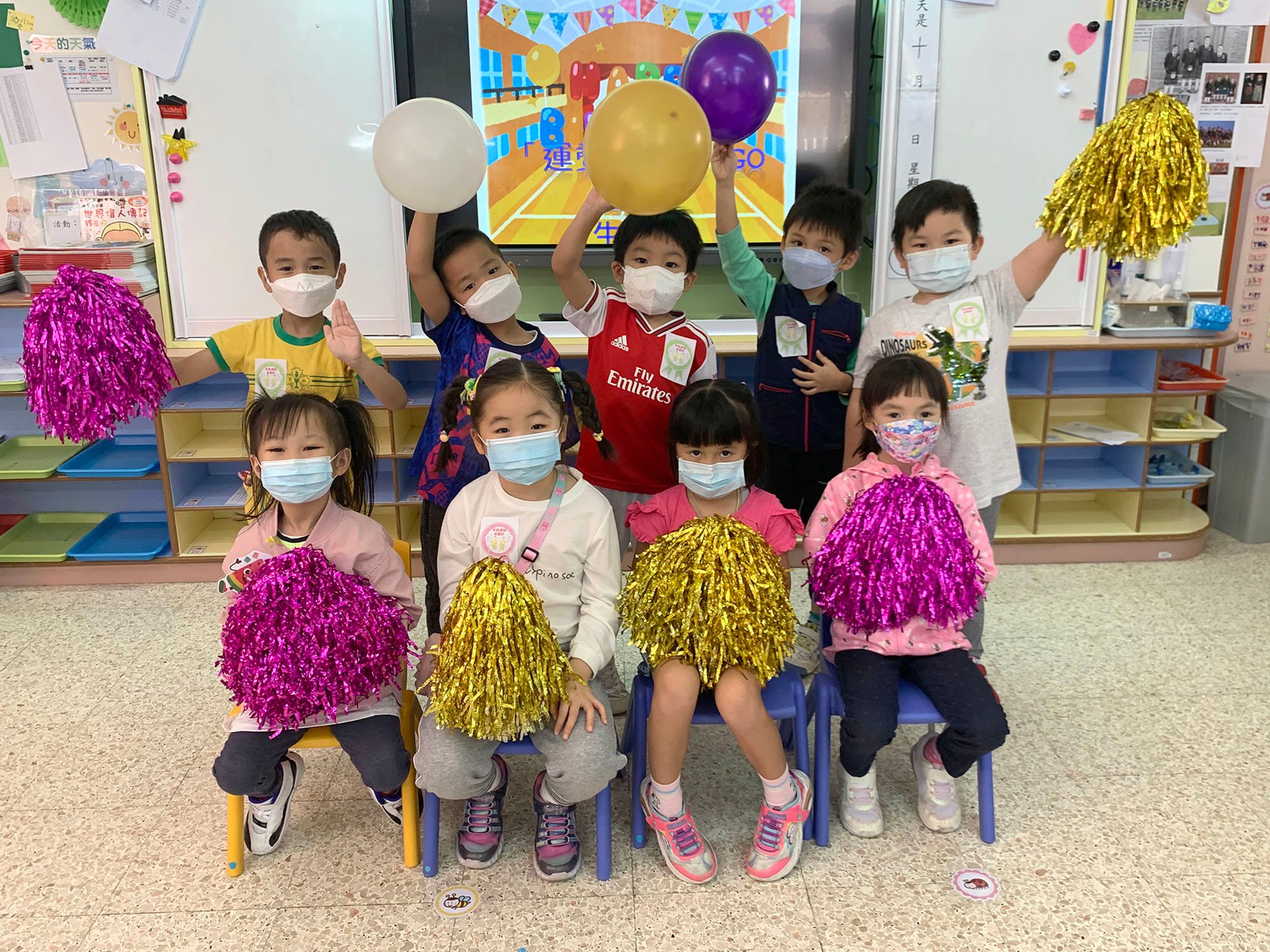 本園於2022年10月12日(星期三)為9月及10月份生日小朋友舉行生日會。當天,師生們穿著各類運動服飾回校一同參與活動,變身為不同運動項目的健兒,有游泳、足球、體操、籃球、羽毛球、跆拳道⋯⋯各具特色!隨著老師的邀請,課室的健兒們展開排球、空手道和草地滾球的大比拼,現場情緒高漲,師生亦不斷為他們打氣吶喊,校園內氣氛相當熱鬧。此外,幼兒們更到不同的活動室體驗各式各樣的運動遊戲,如射箭、打保齡球、乒乓球、高爾夫球、舉重、踏單車等,幼兒都十分投入並非常享受,歡渡了一個既特別又難忘的生日會。