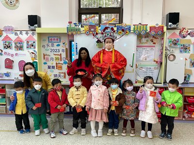 二零二三年一月三十日為本校兔年第一天上學的大日子,幼兒穿著漂亮的華服、精靈活潑地回校一起進行團拜活動! 幼兒與老師一起舞獅賀歲,並製作賀年花燈、猜燈謎……等,更收到財神的紅封包呢!在此,祝福每一位小朋友與每一個家庭,新一年健健康康,平平安安!恭祝各位小朋友聰明伶俐!快高長大!