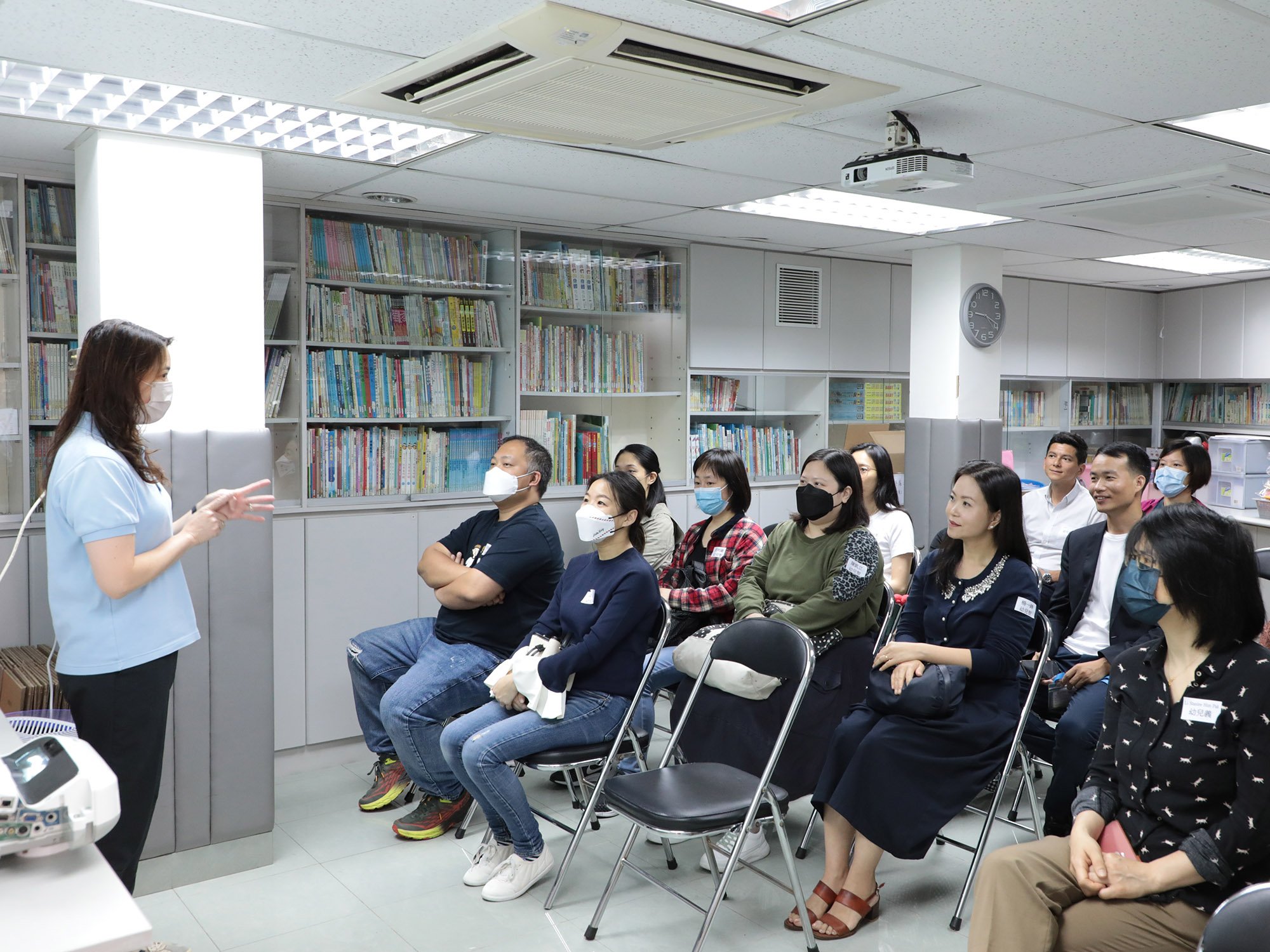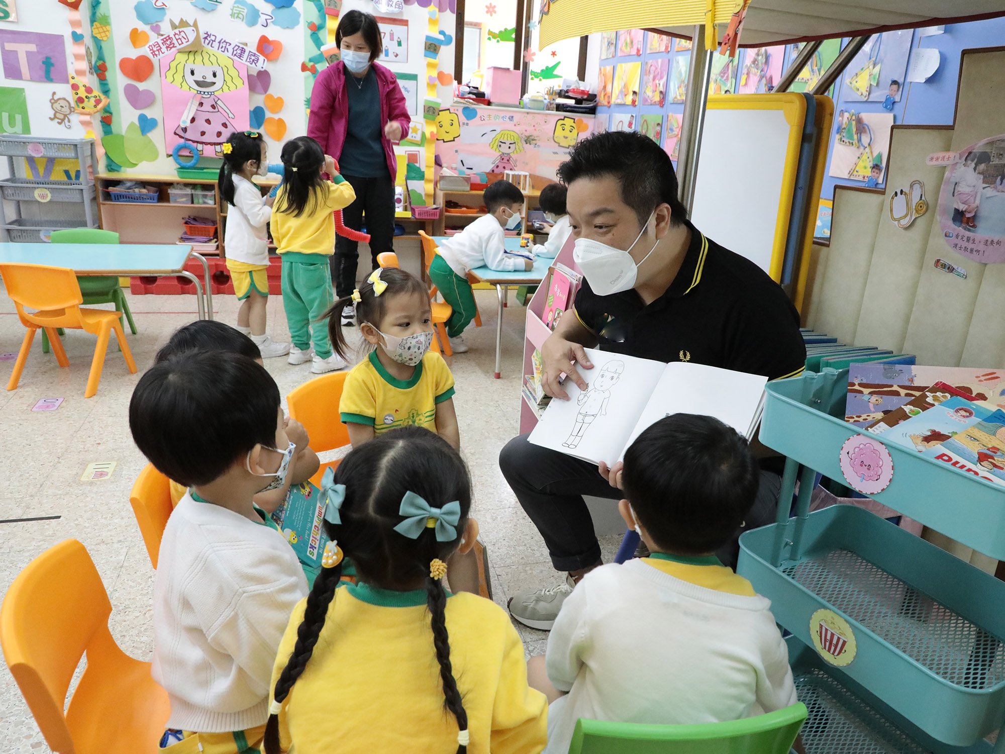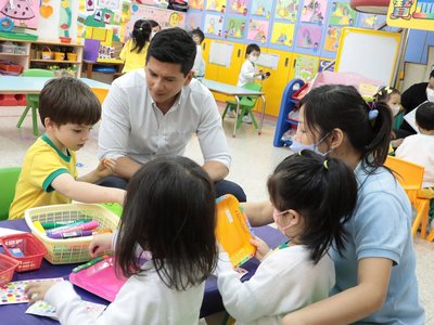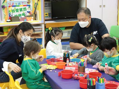幼兒班家長分別於2023年4月26、28日及5月5、18、19日到校參與「家長一起上學去」活動,當天先由黃碧珊主任與家長分享本園幼兒班的課程發展。然後讓他們嘗試當「爸媽老師」一起參與教學活動,共同體驗幼兒愉快學習的經歷。課後他們與主任分享教學體驗的感受,以及教養孩子的心得,同時他們亦體會到老師教學的辛勞,十分欣賞老師對教學工作的熱誠。當天家長們都非常投入及積極,十分享受與孩子一起學習的時光。