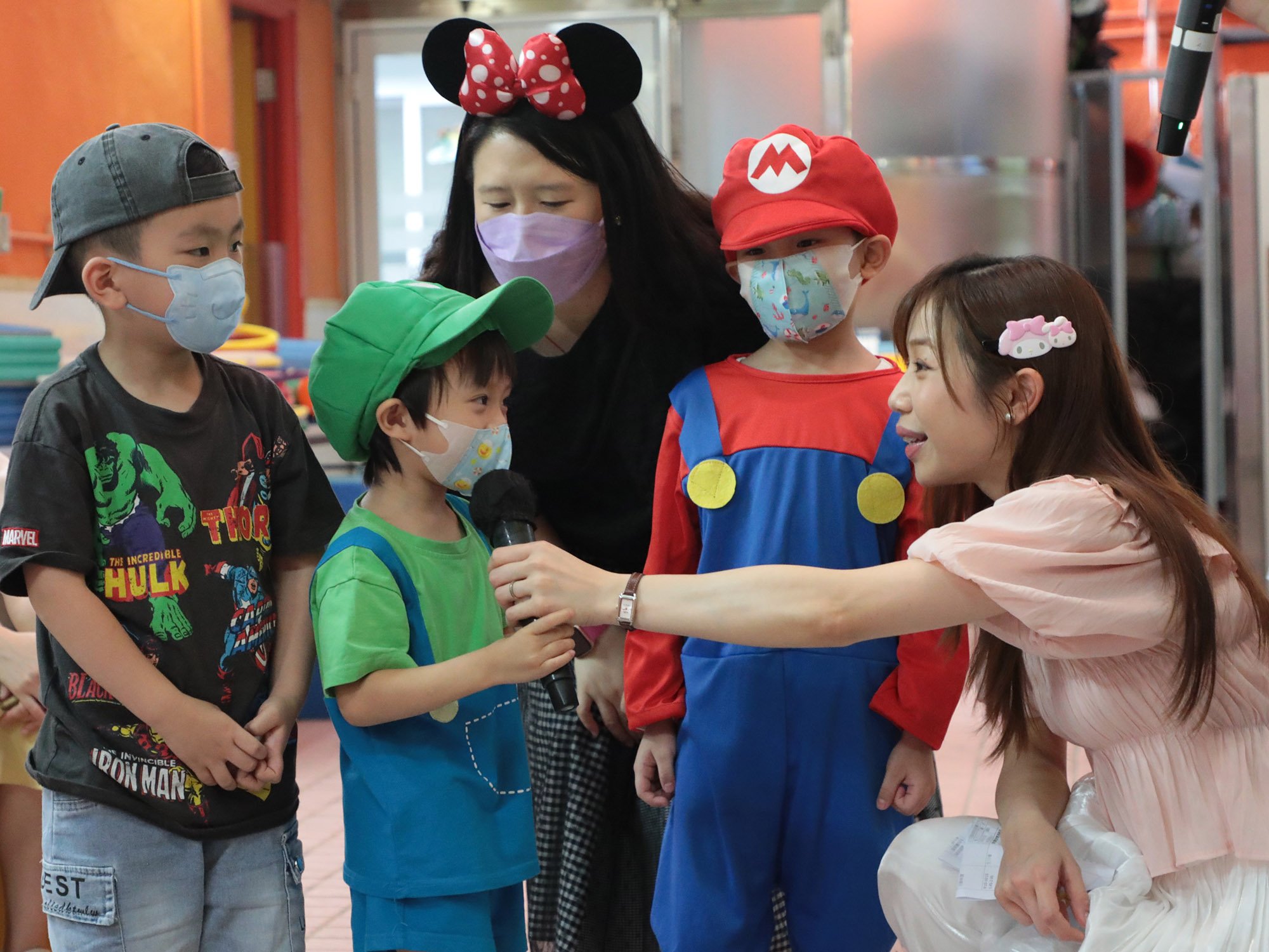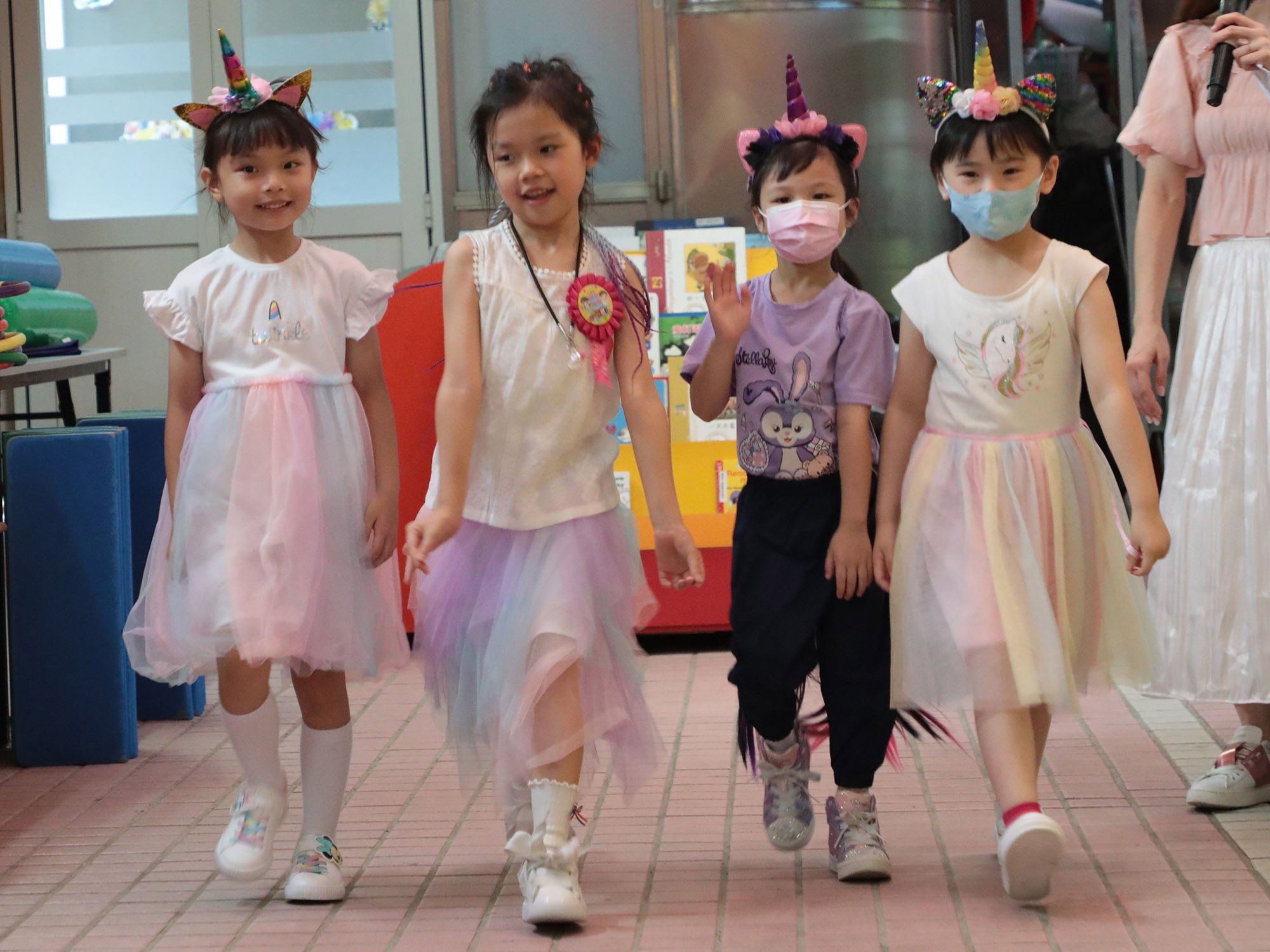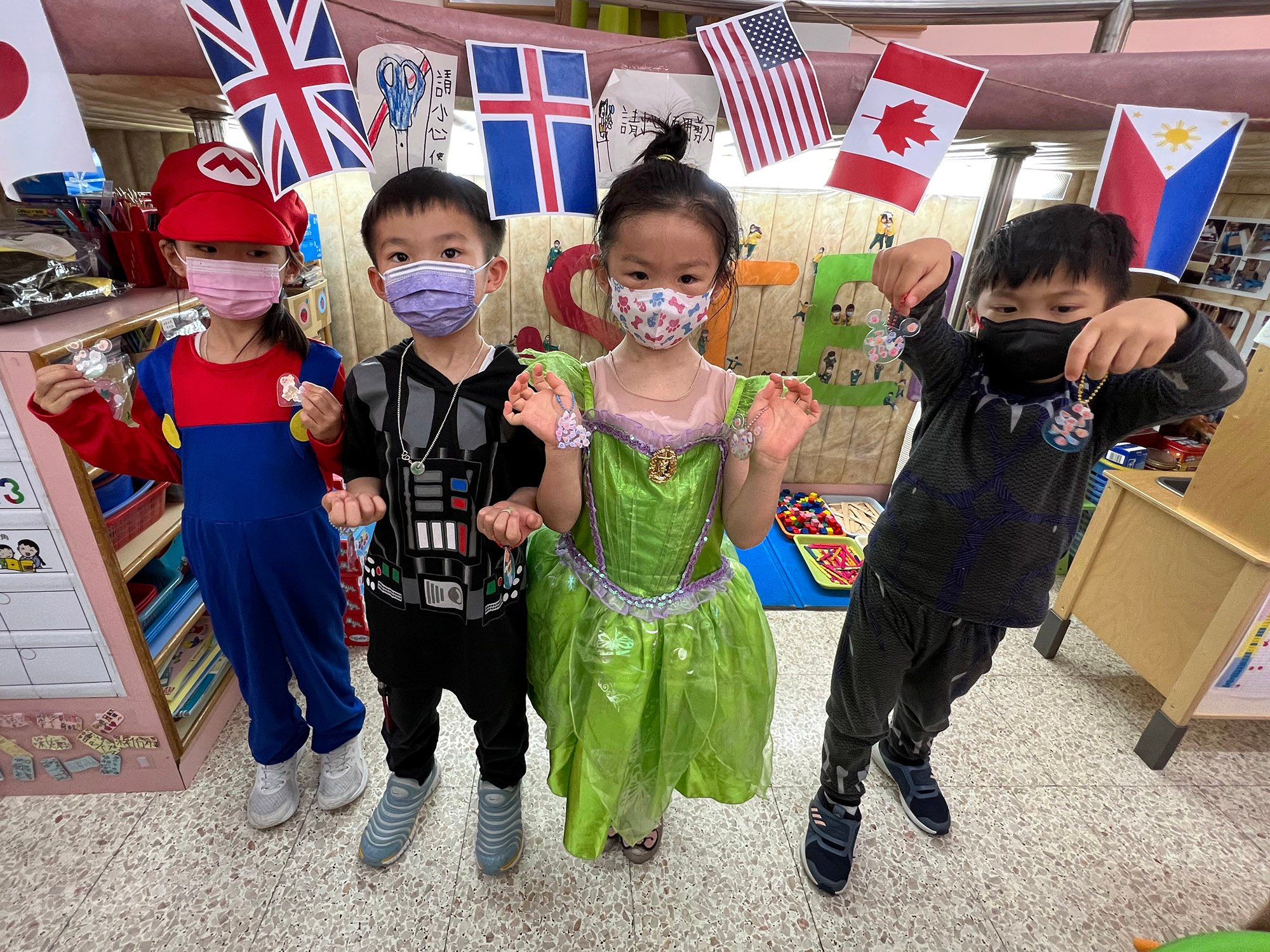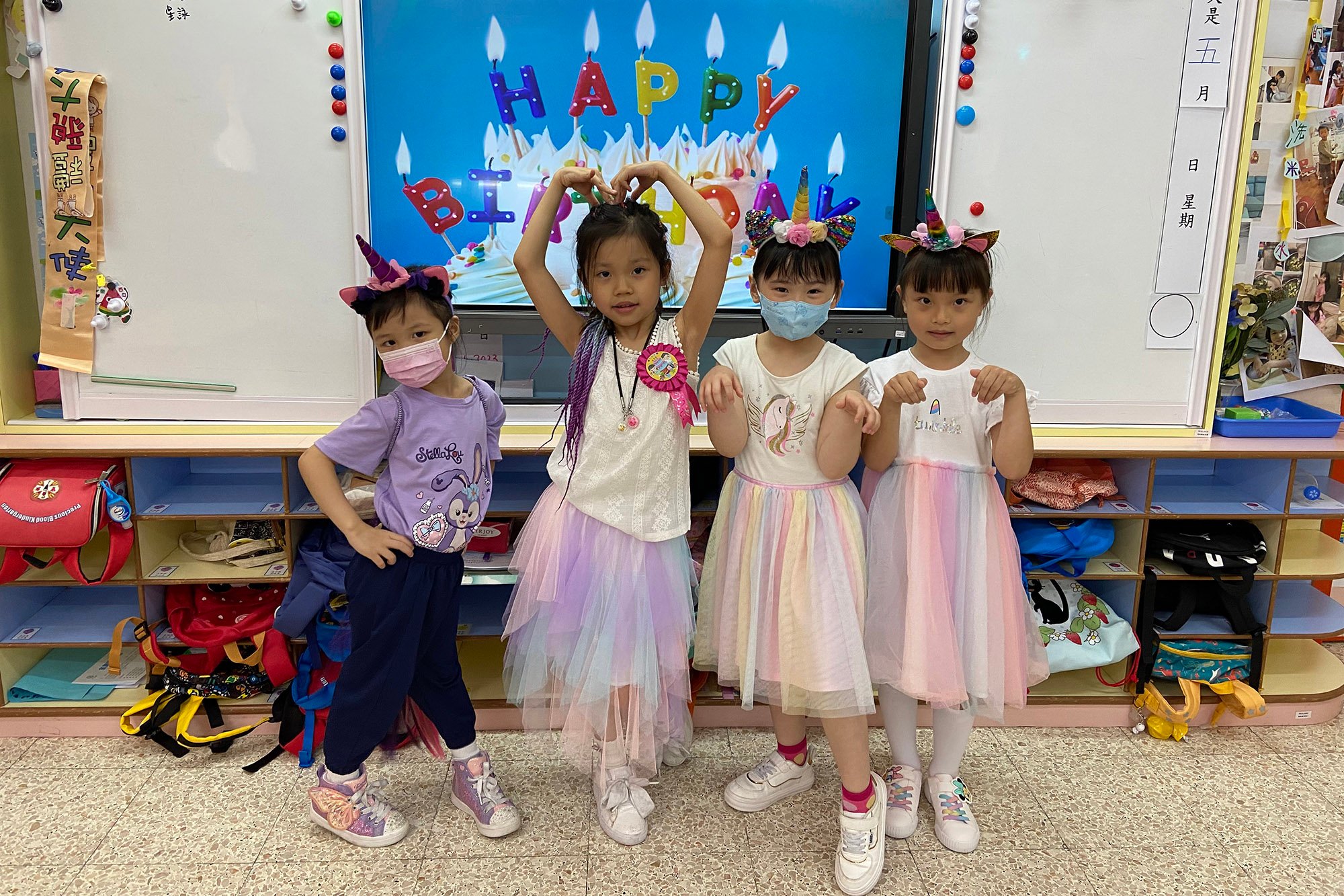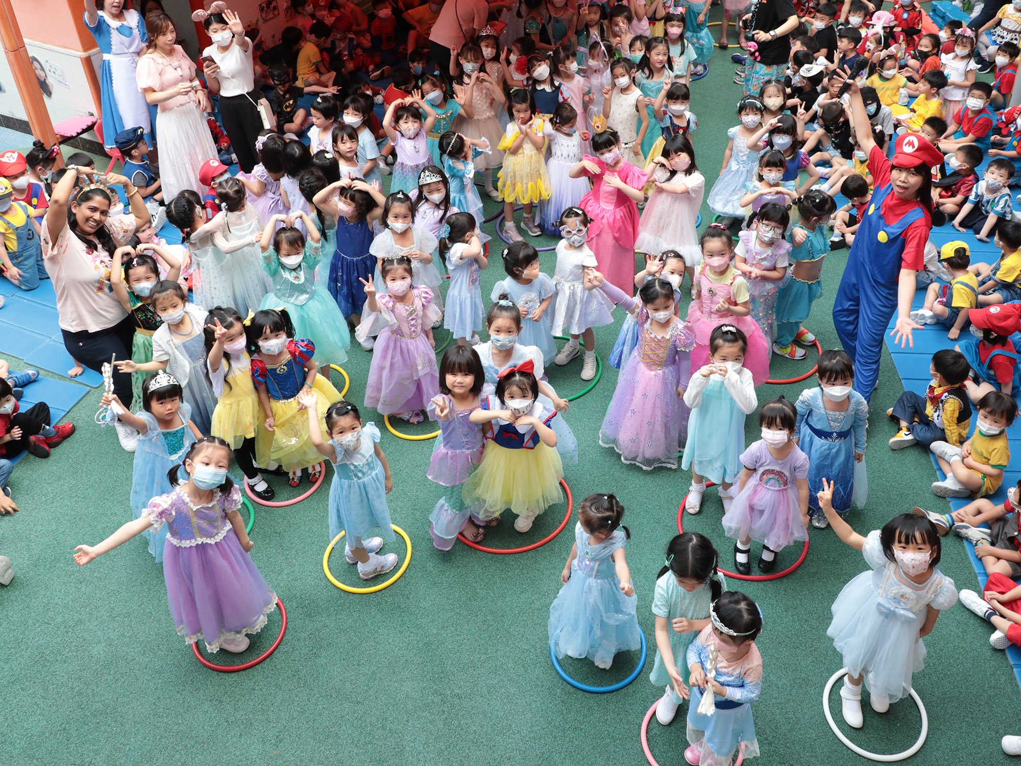 本園於5月22日(星期一)為5、6月生日的小朋友舉行了「卡通人物」生日會。配合活動主題,幼兒變身成為自己喜愛的卡通人物,有優雅的公主王子、勇敢的英雄、可愛的米奇和唐老鴨……造型色彩繽紛,十分可愛!當日進行了一連串精彩的慶祝活動,配合幼兒的卡通人物服飾妝扮,進行卡通人物大追蹤和大風吹遊戲,其中又有卡通人物FASHION SHOW,幼兒玩得十分盡興呢!除了參與不同有趣的遊戲外,幼兒更加發揮創意,製作一個獨一無二的卡通人物吊飾!當天全校的師生更首次進行交換貼紙活動,學習慷慨與人分享,大家也渡過了美好的一天!