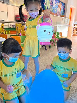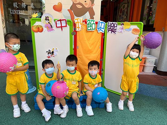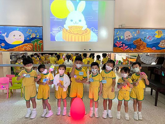 為迎接中秋節的到來,本園於2022年9月9日舉行了一個別開生面的中秋節提燈會,當天全校幼兒一起聆聽中秋節故事、欣賞彩燈會、舞火龍影片、認識如何製作燈籠和月餅。幼兒們在唱遊室進行「光影追月」活動,與老師一起欣賞LED燈飾,玩卡通投射燈、彩色電筒、卡通燈籠等。透過一連串的精彩活動,讓幼兒感受中秋節的熱鬧氣氛,大家都過了一個難忘又温馨的中秋節。