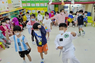 本園於2022年10月12日(星期三)為9月及10月份生日小朋友舉行生日會。當天,師生們穿著各類運動服飾回校一同參與活動,變身為不同運動項目的健兒,有游泳、足球、體操、籃球、羽毛球、跆拳道⋯⋯各具特色!隨著老師的邀請,課室的健兒們展開排球、空手道和草地滾球的大比拼,現場情緒高漲,師生亦不斷為他們打氣吶喊,校園內氣氛相當熱鬧。此外,幼兒們更到不同的活動室體驗各式各樣的運動遊戲,如射箭、打保齡球、乒乓球、高爾夫球、舉重、踏單車等,幼兒都十分投入並非常享受,歡渡了一個既特別又難忘的生日會。