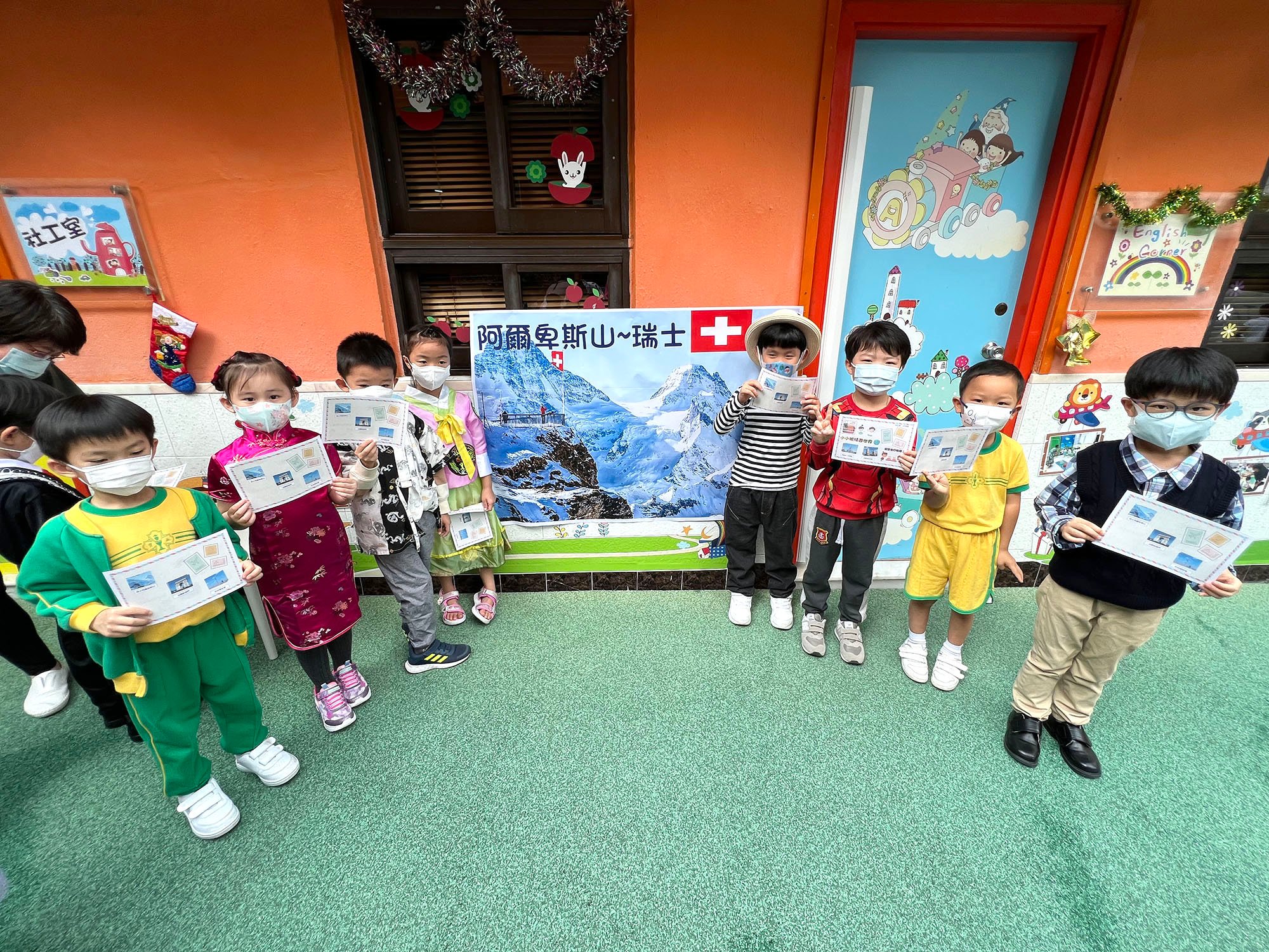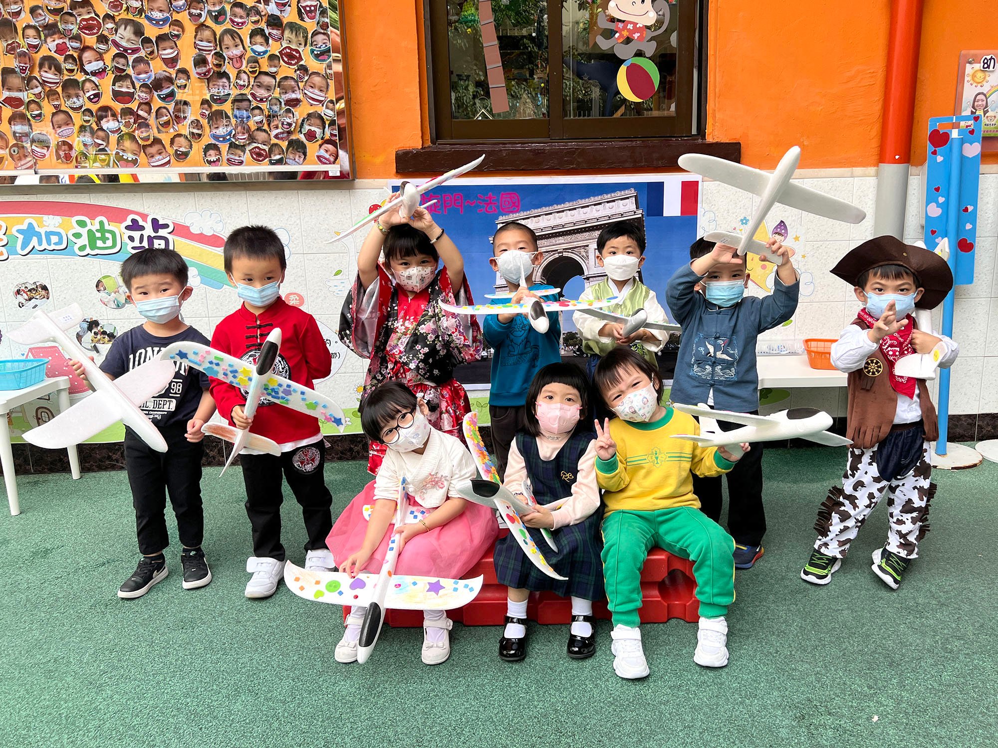 本園於2022年11月30日(星期三)舉行了「世界風情展姿釆 」生日會,幼兒們都悉心打扮,穿著了不同國家的服飾回校參與活動,一同為11月及12月份生日的小朋友慶祝生日!當天幼兒不但認識了不同國家的傳統服裝和文化特色,更拿著名信片到處搜集世界各地的名勝貼紙,在不同國家的名勝背景前與老師拍照留念,十分熱鬧!此外,幼兒們亦挑戰了非洲連步舞,以及設計了一架獨一無二的小飛機,帶到操埸一起試飛「衝上雲霄」,幼兒都感到相當難忘呢!